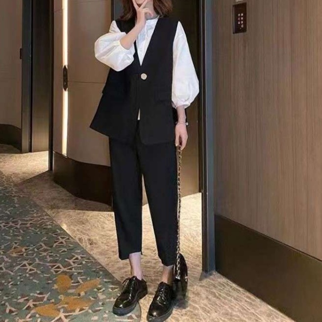 洗練されたベストとパンツのセットアップは、オフィスカジュアルの新定番とも言える存在感のある通勤服です。