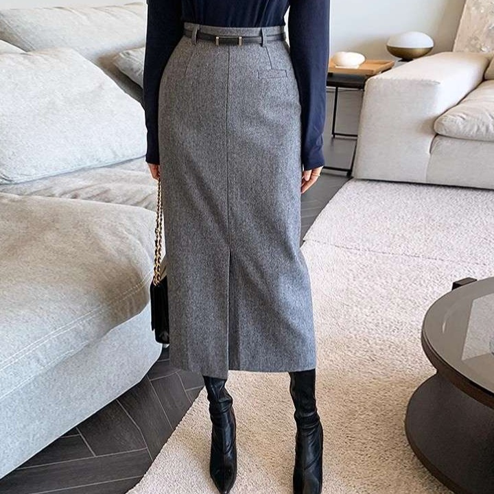 骨スト向けオフィスカジュアルウールロングタイトスカート