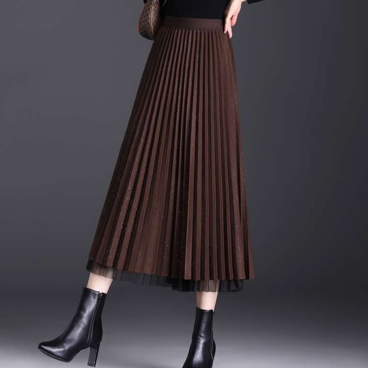 オフィスカジュアル向けプリーツロングスカート