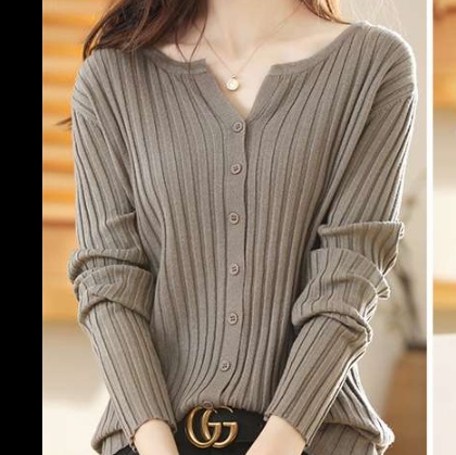 しなやかな素材感のリブ編みカーディガン。すっきりとしたVネックデザインで、オフィスカジュアルにぴったり。ボタンダウンスタイルで着脱も簡単。細身のシルエットでスタイリッシュな印象に。上品な光沢感があり、デイリーにもビジネスにも活躍する一枚。