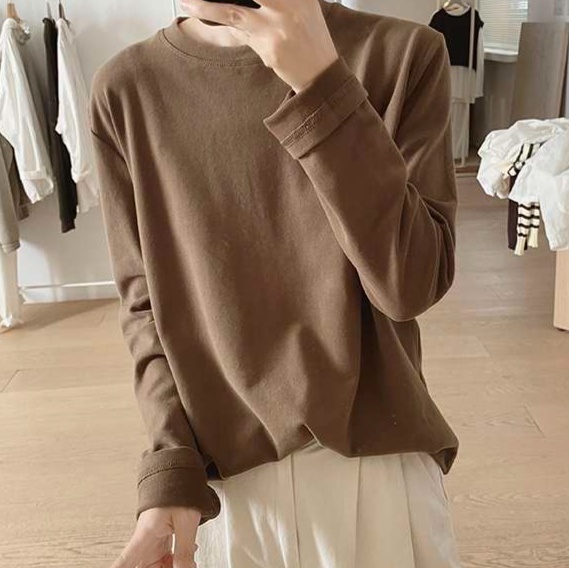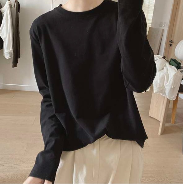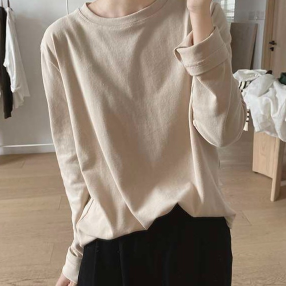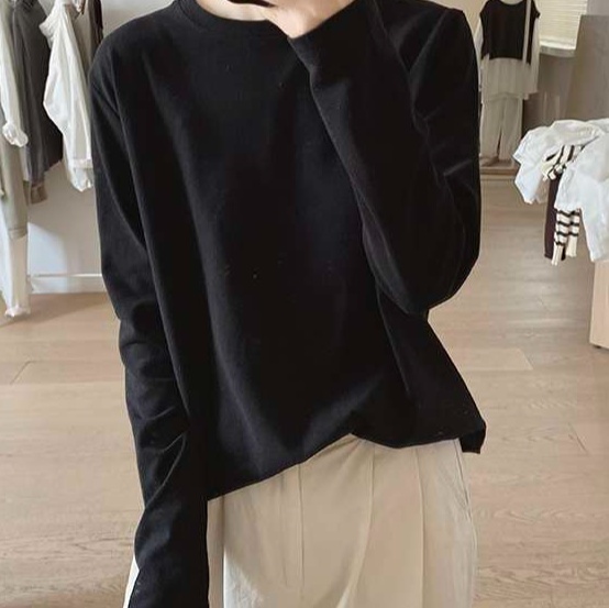 ゆったりとしたシルエットで快適な着心地のトレーナー。柔らかな素材で肌触りが良く、日常使いにぴったり。シンプルなデザインで様々なコーディネートに合わせやすく、オフィスカジュアルにも適している。長袖で季節の変わり目にも活躍する一枚。