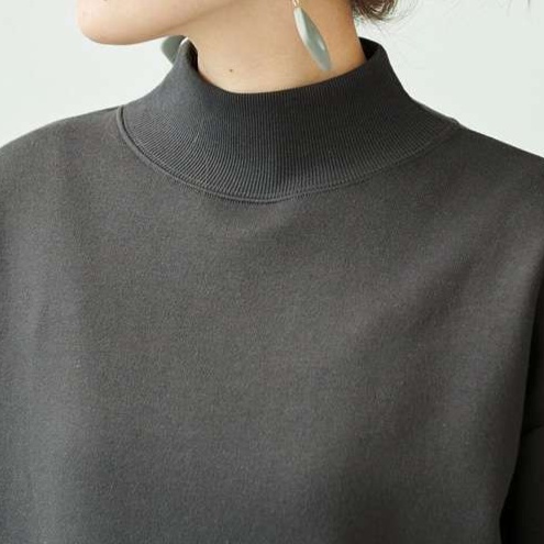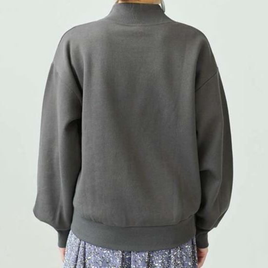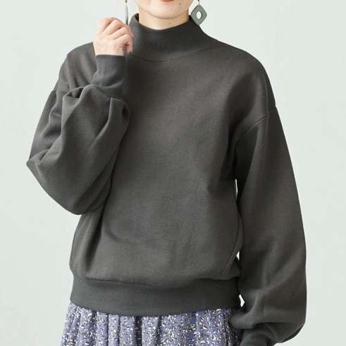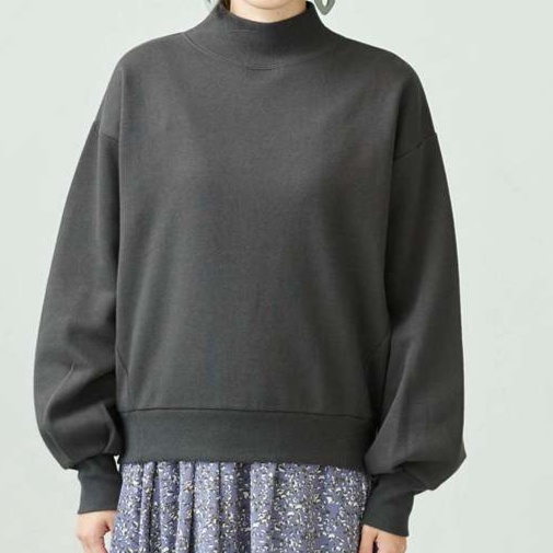 ゆったりとしたシルエットが特徴的なスウェットトップス。モックネックデザインで首元をすっきりと見せます。袖にボリュームを持たせたデザインで、カジュアルながらも女性らしさを演出。オフィスカジュアルにも適した上品な雰囲気を醸し出します。