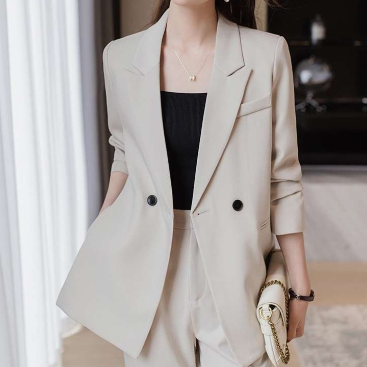 スタイリッシュで洗練されたデザインのジャケットとパンツのセットアップ。シンプルながら上品な印象を与え、オフィスからビジネスシーンまで幅広く活躍。ゆったりとしたシルエットで快適な着心地を実現。アクセサリーとの相性も良く、様々なコーディネートが楽しめる一着。