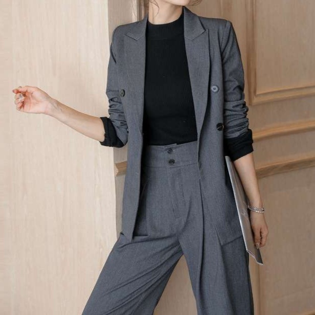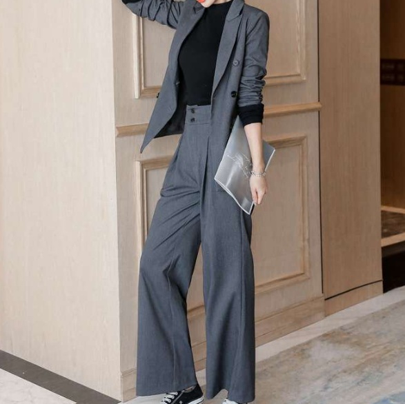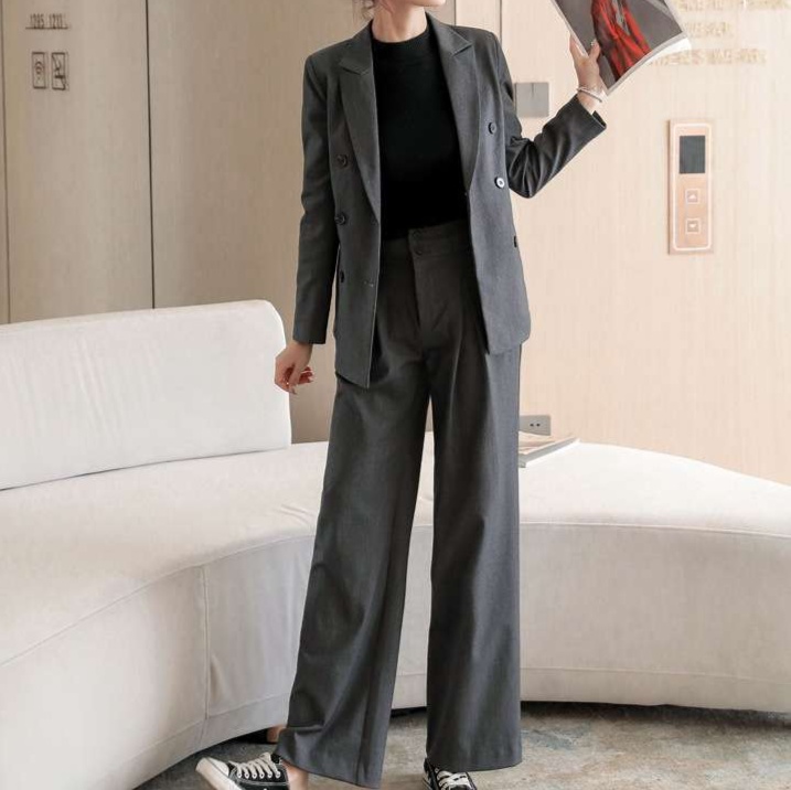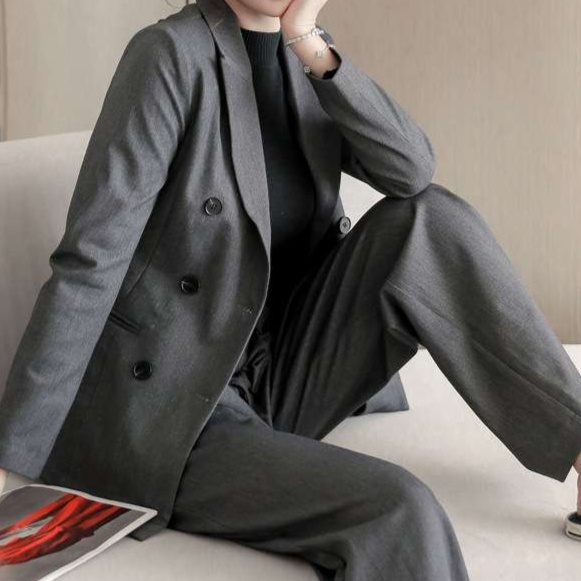 シャープなシルエットのジャケットとワイドパンツのセットアップ。上品な素材感と洗練されたデザインで、ビジネスシーンから休日のお出かけまで幅広く活躍。着心地の良さと美しいラインを両立した一着。