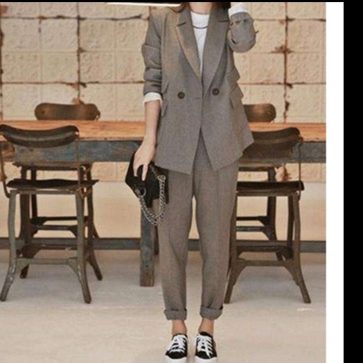 ゆったりとしたシルエットのジャケットとパンツのセットアップ。柔らかな素材感で快適な着心地。シンプルなデザインで様々なシーンに対応。スニーカーと合わせてカジュアルダウンも可能な汎用性の高いアイテム。