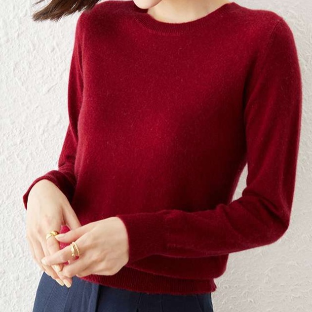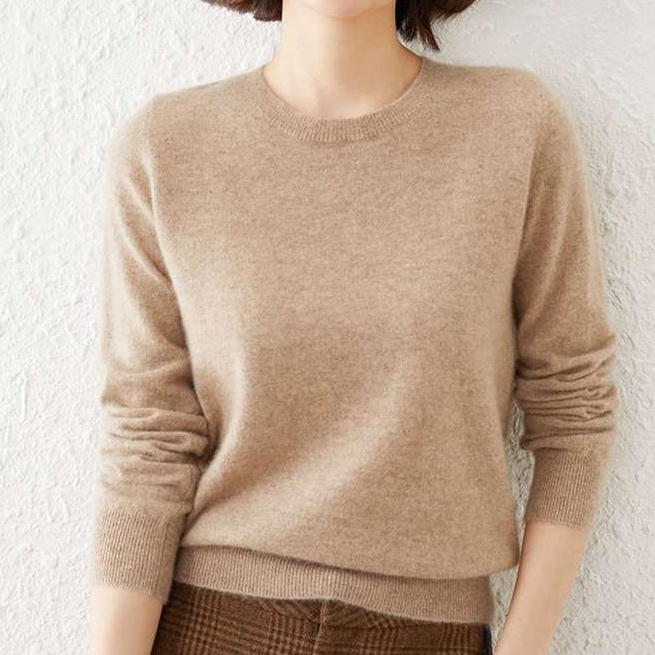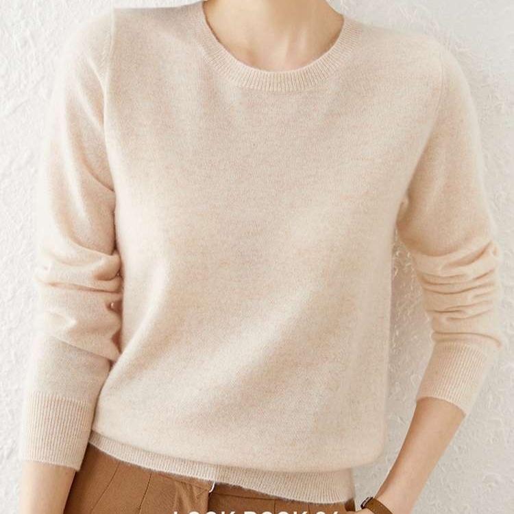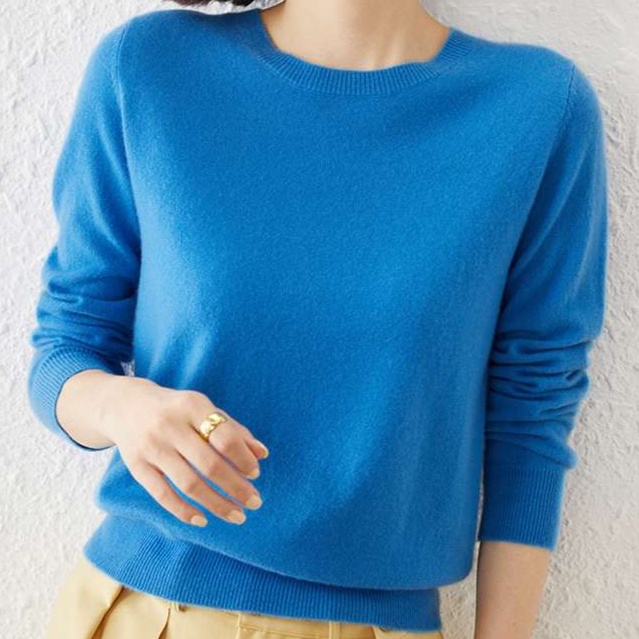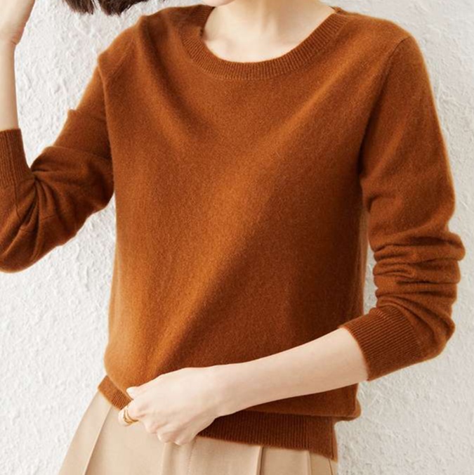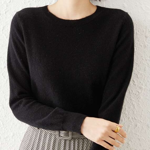 しっとりとした肌触りの高品質ニット素材を使用。シンプルなデザインで様々なスタイルに合わせやすく、オフィスからカジュアルまで幅広く活躍する一着。長めの袖丈で腕を細く見せる効果も。