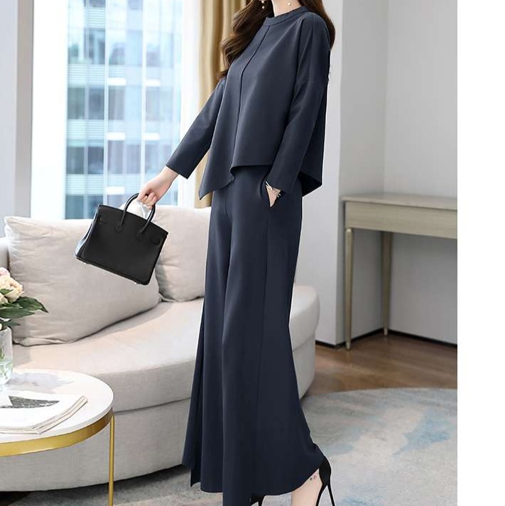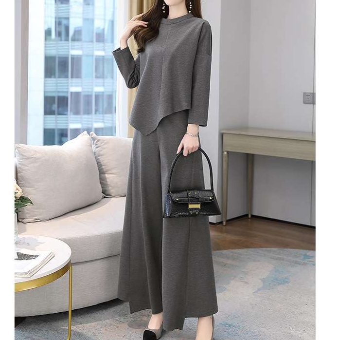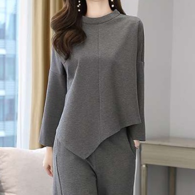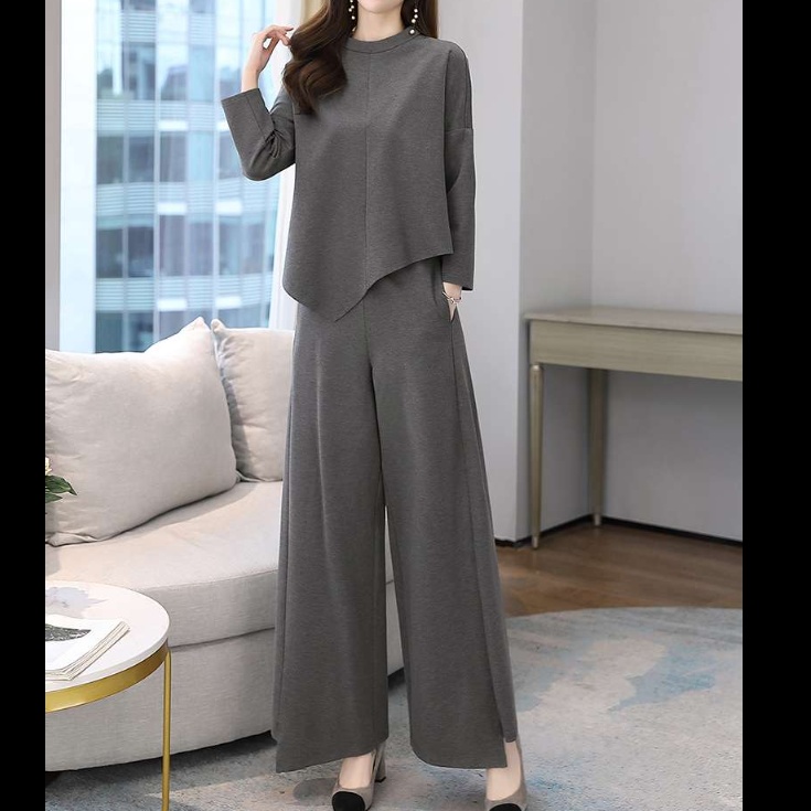 ゆったりとしたシルエットで上品な着こなしを演出する、アシンメトリーな裾デザインが特徴的なパンツドレス。ワイドパンツとのセットアップで、洗練された大人の装いを実現。オフィスからお出かけまで幅広く活躍。