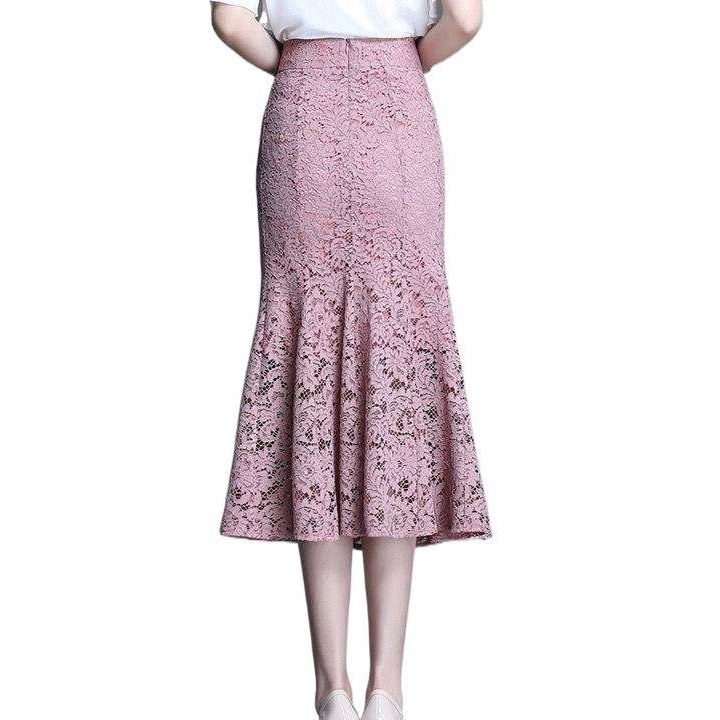 洗練されたレース素材で仕立てたマーメイドラインスカート。ピンクと黒の2色展開で、オフィスからお呼ばれシーンまで幅広く活躍。上品な膝下丈で、feminine且つ知的な印象を演出します。柔らかな曲線美が魅力的な一枚です。