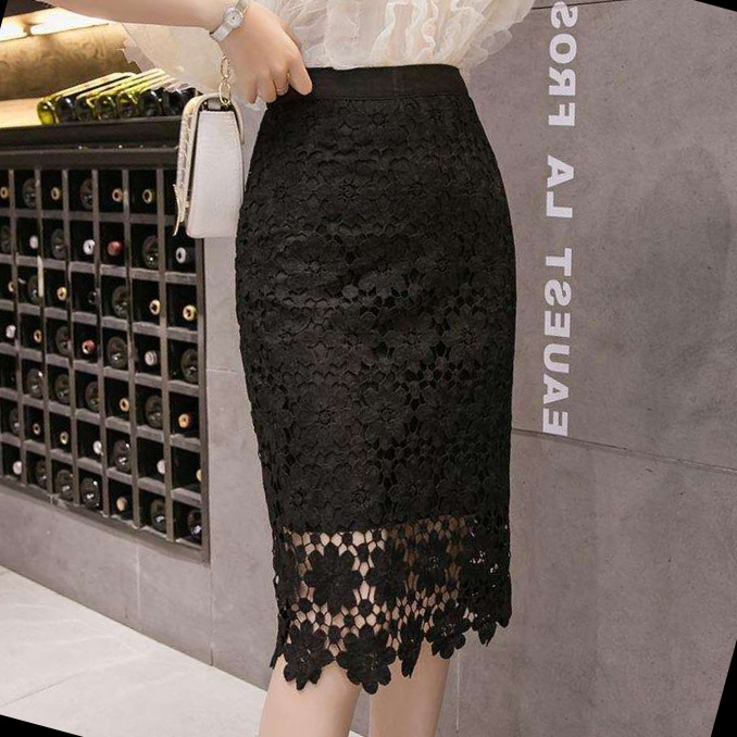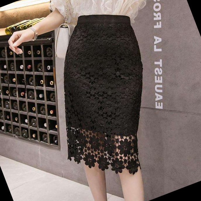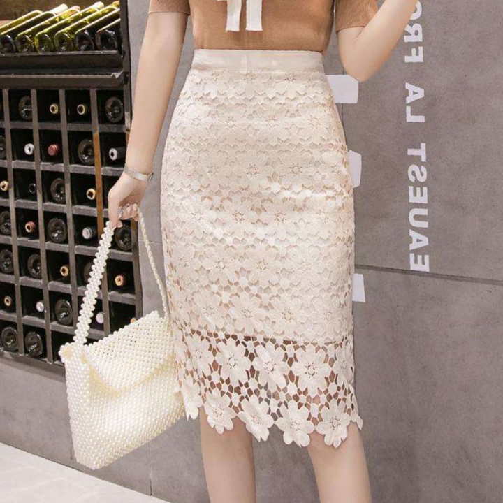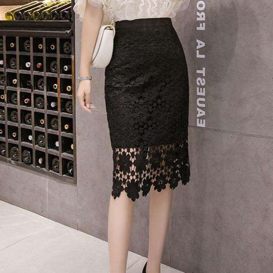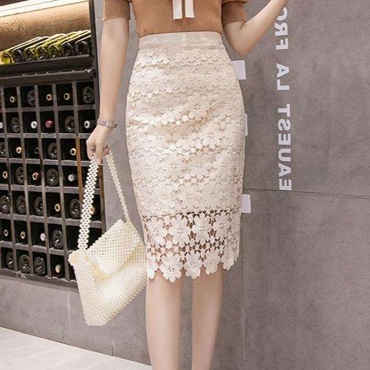 上品な花柄レースが特徴の膝丈スカート。ブラックとホワイトの2色展開で、オフィスからお出かけまで幅広く活躍。裾のカットワークデザインが女性らしさを演出し、どんなトップスとも相性抜群です。